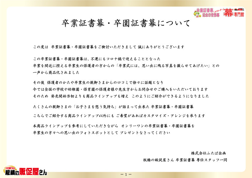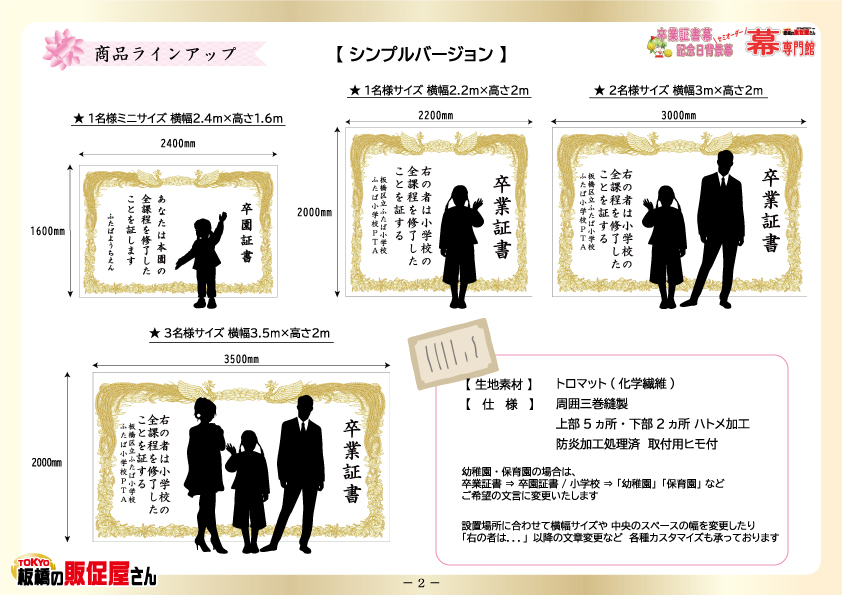 卒業証書幕・卒園証書幕 商品ラインアップ